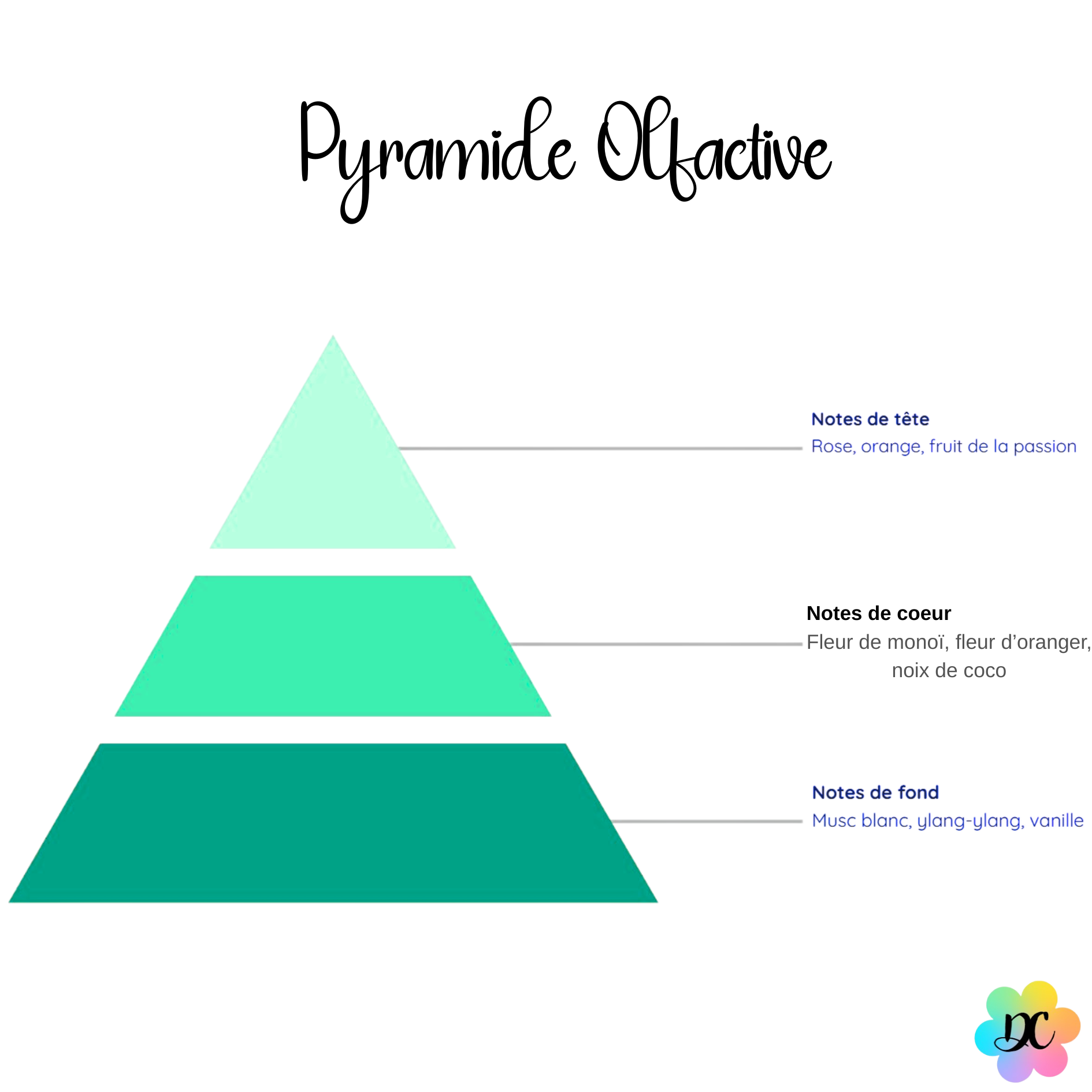 - La vanille et le musc blanc enveloppent le tout de douceur et de chaleur